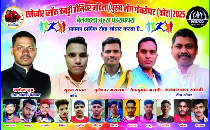 बिलासपुर / ग्राम गोबरीपाट में 29 नवंबर से 1 दिसंबर 2025 तक आयोजित एमेच्योर ब्लॉक कबड्डी प्रीमियर लीग (KPL 2025) का तीन दिवसीय भव्य आयोजन शानदार उत्साह और रोमांच के साथ सम्पन्न हुआ। इस प्रतियोगिता में कोटा ब्लॉक की 10 चयनित टीमों ने हिस्सा लिया, जिसमें पुरुष व महिला—दोनों वर्गों के मुकाबले शामिल थे। ग्रामीण खेलों को बढ़ावा देने और स्थानीय खिलाड़ियों की प्रतिभा को मंच देने के उद्देश्य से आयोजित इस लीग में बड़ी संख्या में दर्शक उपस्थित रहे।