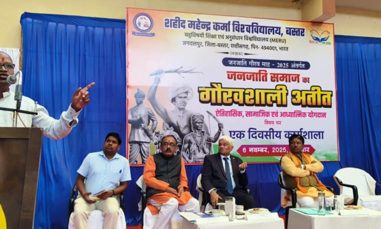 गुरूवार को शहीद महेंद्र कर्मा विश्वविद्यालय में इस विषय को लेकर एक दिवसीय कार्यशाला का आयोजन किया गया। जनजातीय समाज का गौरवशाली अतीत एवं उनके ऐतिहासिक, सामाजिक एवं आध्यात्मिक योगदान विषय पर आयोजित इस कार्यक्रम में सांसद महेश कश्यप, कुलपति प्रो एमके श्रीवास्तव, वनवासी विकास समिति के प्रांत संगठन मंत्री रामनाथ कश्यप एवं विवि कार्यपरिषद् के सदस्य राजीव शर्मा उपस्थित थे।